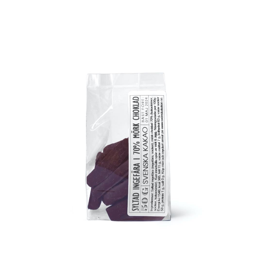 En mild, mjuk och balanserad ingefära som syltats och doppats i vår mörka choklad. Den känns nästan både som en sötsak såväl som en nyttighet. Oavsett är den en publikfavorit. Innehåller dessutom bara ingefära, socker och choklad. Inga konstigheter, bara ren njutning.